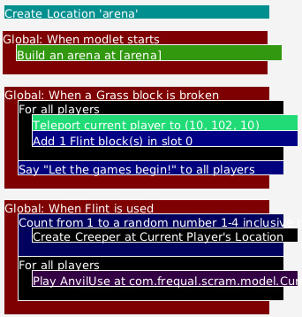 Drag 'Build an arena at 0, 100, 0' onto the block