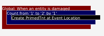 Drag a 'Create Creeper at current player's location' block onto the 'Count' block