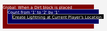 Right click the 'Create' block and pick 'Lightning' instead of 'Creeper'