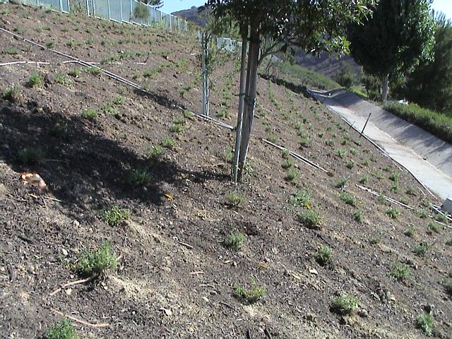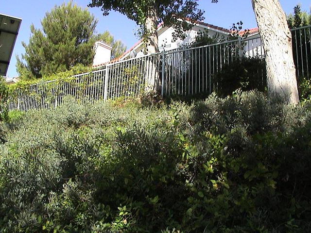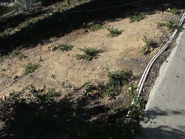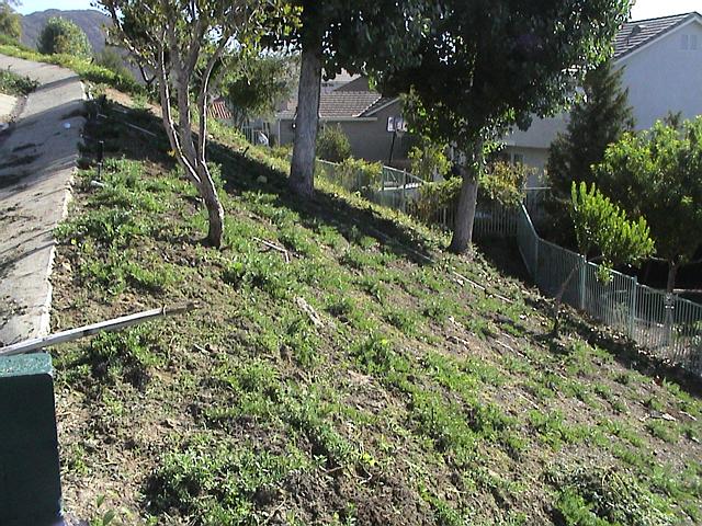 (Picture 1) 7511 Penobscot: Hillside has recovered from previous underwatering. Myoporum are growing nicely, will cover the hillside eventually
