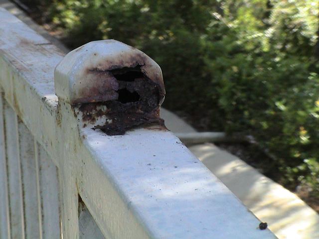 (Picture 8) 24632 Stonegate: Fence is rusting through on the caps. (Same area as picture 7)